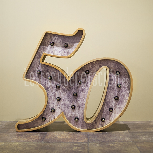 -El número 50 de 83 cm de altura x 94 cm de ancho x 17,5 cm de grosor.