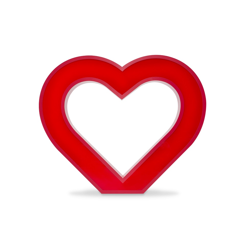 -El corazón de 60 cm de altura x 72 cm de ancho x 12 cm de grosor.