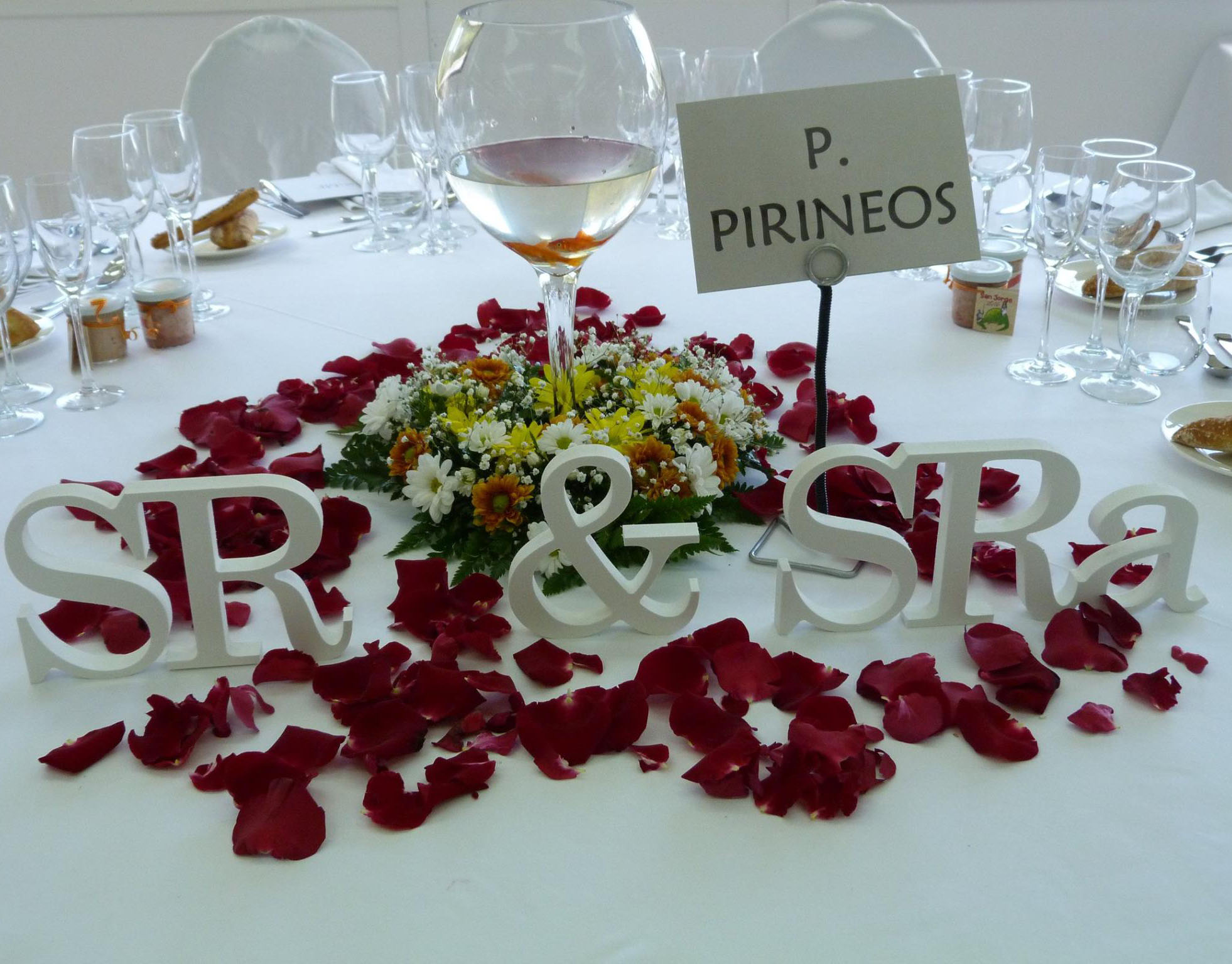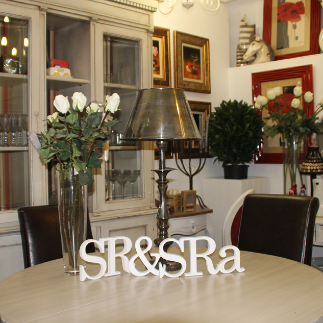 Letras decorativas “SR & SRA” hechas en pvc de color blanco, ideales para dar un toque más personal a la decoración de tu boda.