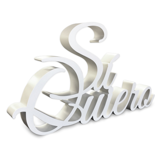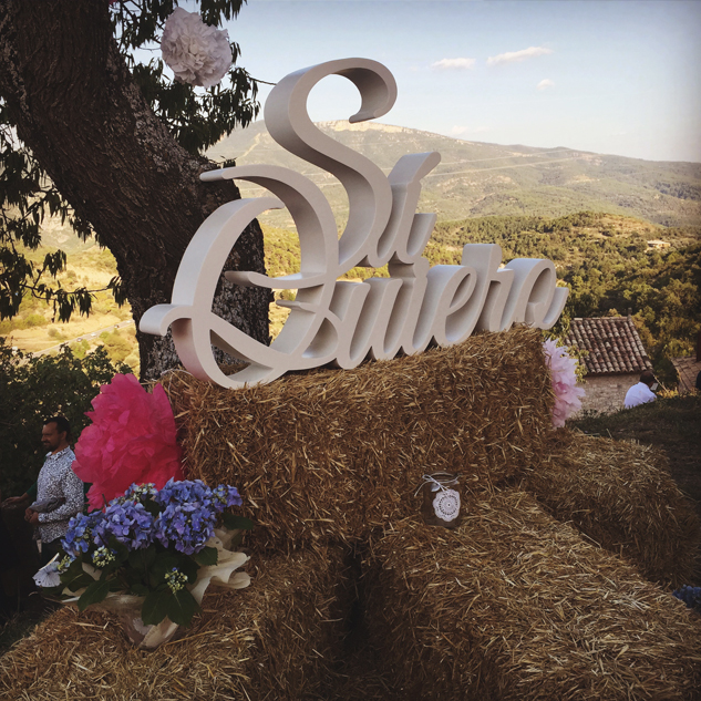 Texto "Si Quiero" en aluminio pintado de blanco roto. Ideal para decorar a la entrada de la iglesia o de la finca.