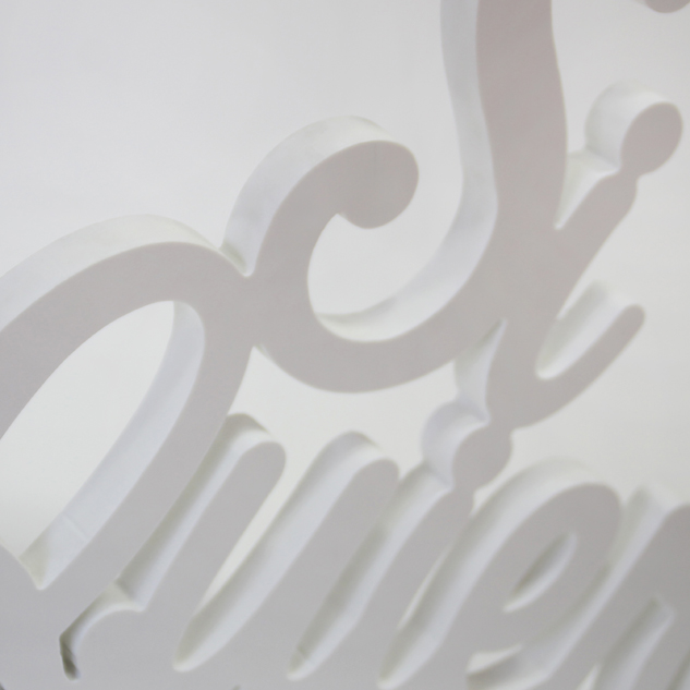 Letras decorativas “Si Quiero” hechas en pvc de color blanco